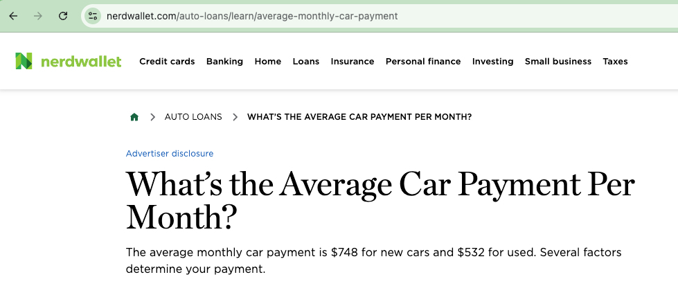 Average used car payment: $532 per month